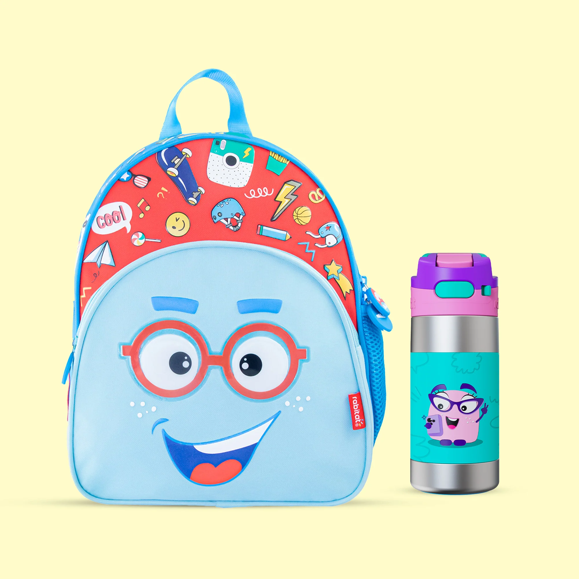 The Rabitat clean lock insulated stainless steel bottle will keep the drinks cool, even in the harshest of summers. Leaving your child with a nice cool drink all day. The silicone band on the bottle makes it non slip and the 3D characters make it so much fun for the little ones. The bottle also features an easy carry handle made keeping the little hands in mind. The bottle has a hygienic clean lock lid which keeps the dirt and germs away from the spout. Match the bottle with other smash products like the smash school bag and smash lunch bag.