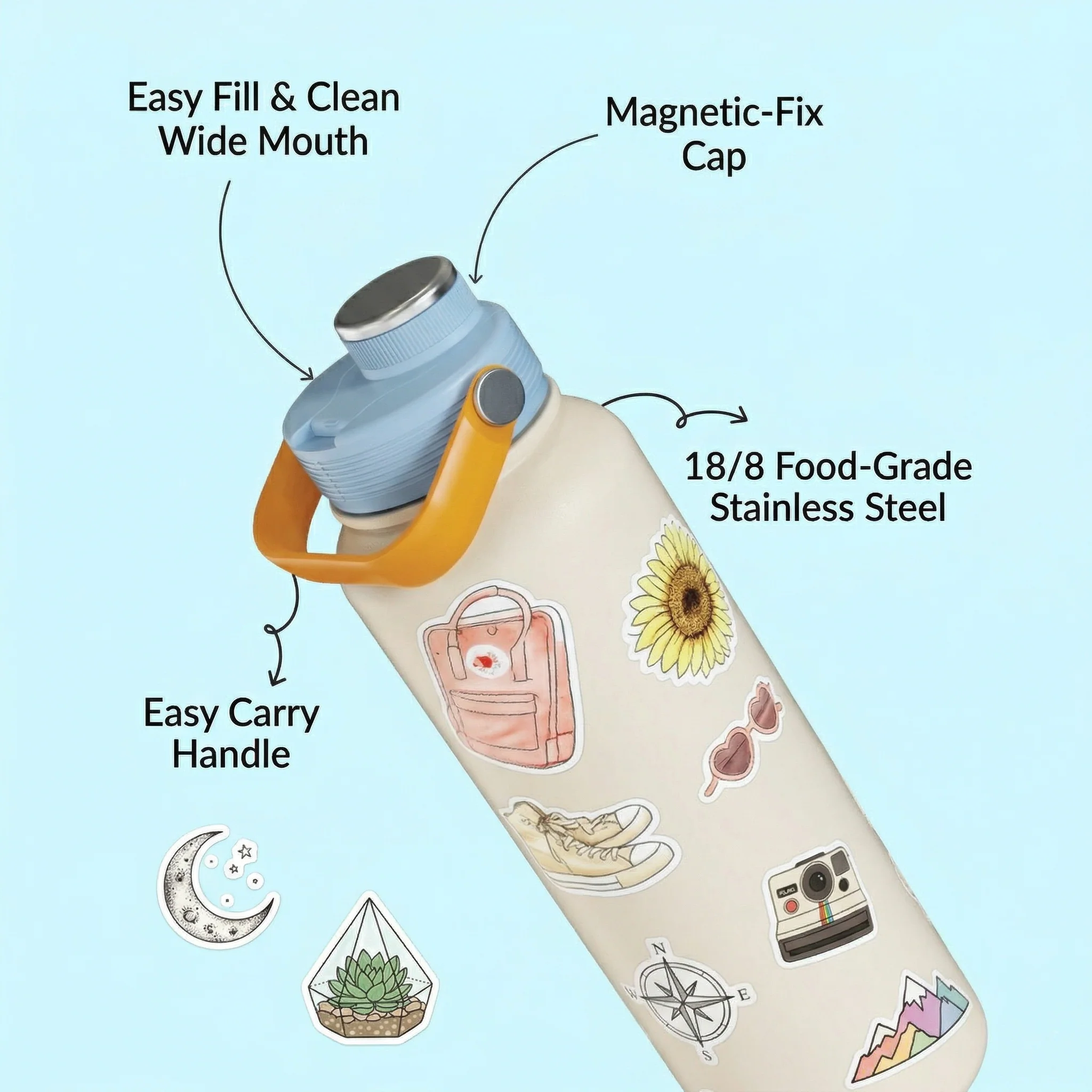Made from 100% food-grade stainless steel with no interior coatings, HYDE protects the purity of every sip.