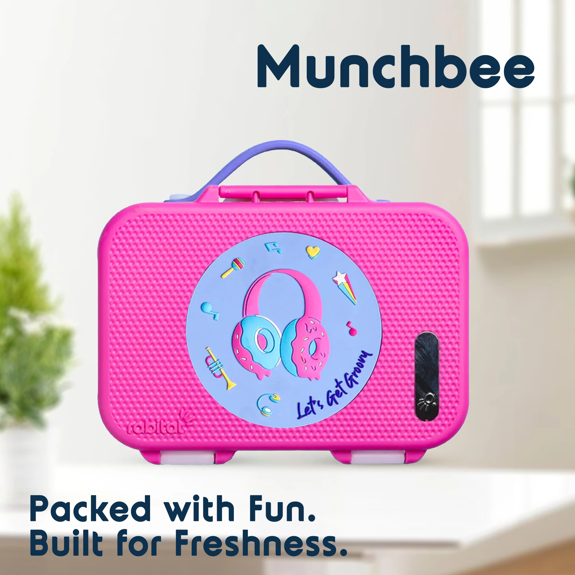 Say hello to Munchbee, your li’l one’s the lunchtime companion with a flair for the quirky. Its divided interior ensures goodbye to food mingling, making your li'l one's favorite treats in place.Munchbee comes with a flick-lock front, securing the munchies, and a poppin' carry handle for that extra splash of swag. Munchbee also flaunts a company of lively Smash characters, turning mealtime into a whimsical carnival. Plus, with a custom steel strip, it's all set for a personalized touch– because Munchbee believes lunchtime should be as unique as your little one!
